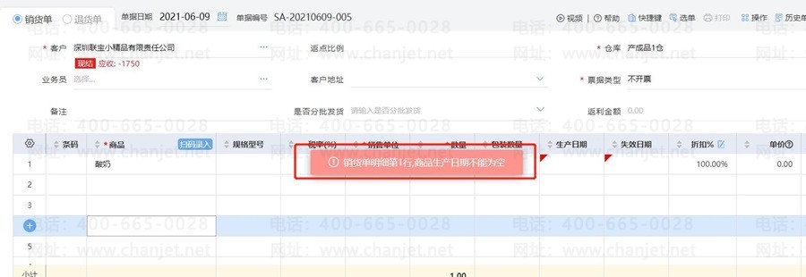 1、如果启用了保质期管理的存货,出库时不录入生产日期,择提示【商品生产日期不能为空】