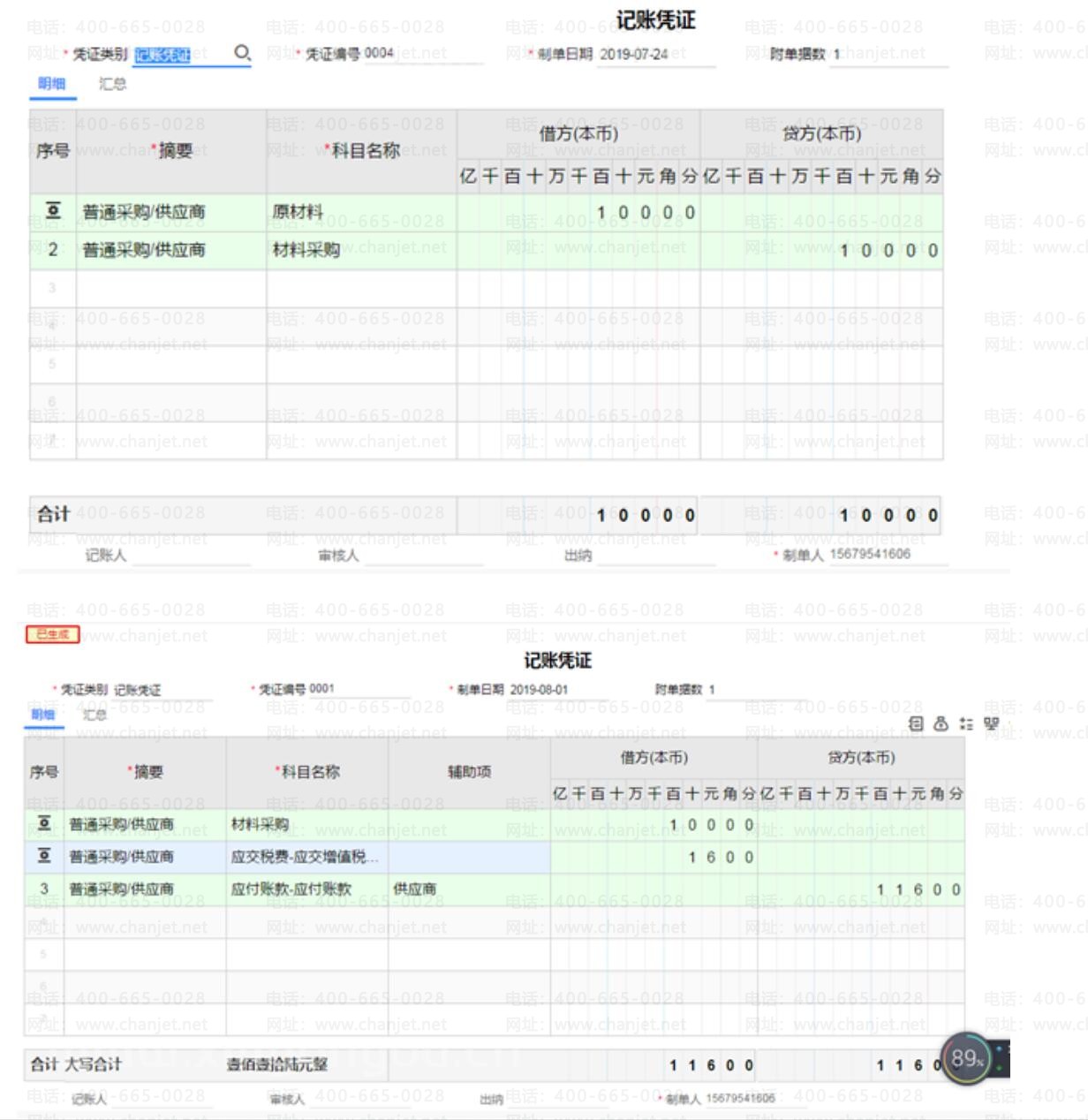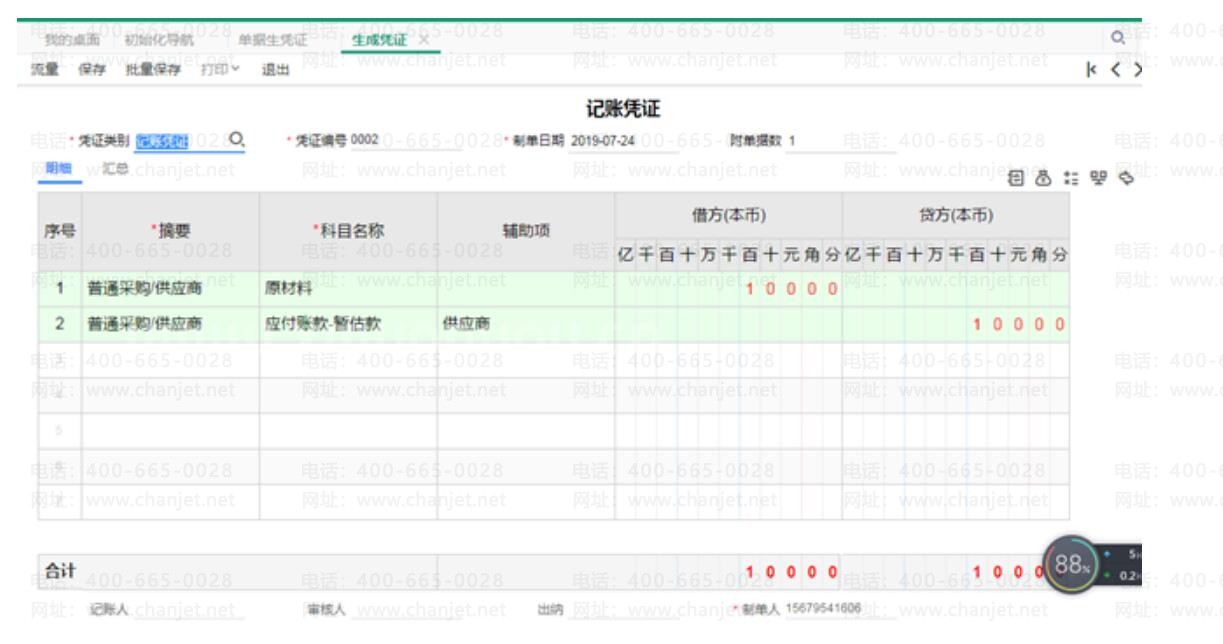 随后,将【采购发票】与【红蓝回冲单】生成凭证。