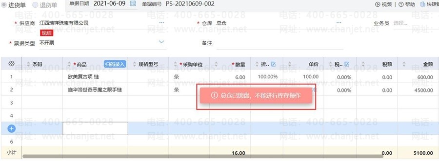 当盘点单仓库锁盘时,再增加该仓库的出入库单时,对于有审核环境的单据进行审核时进行控制但不影响正常开单,若无审核环节,将不允许保存单据。