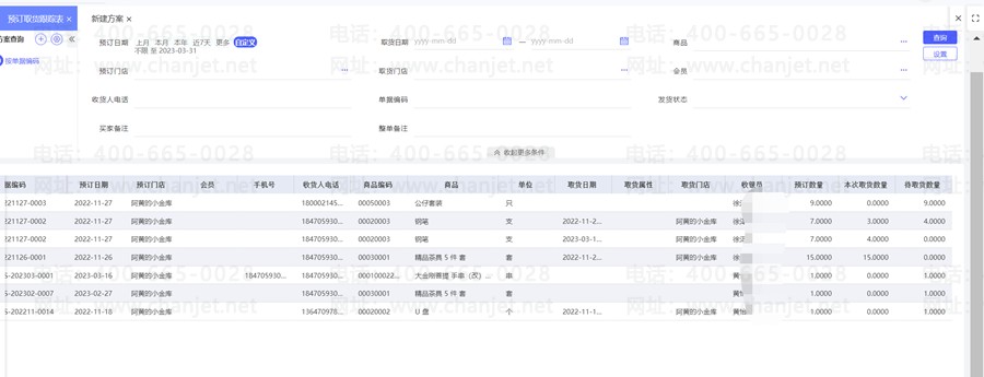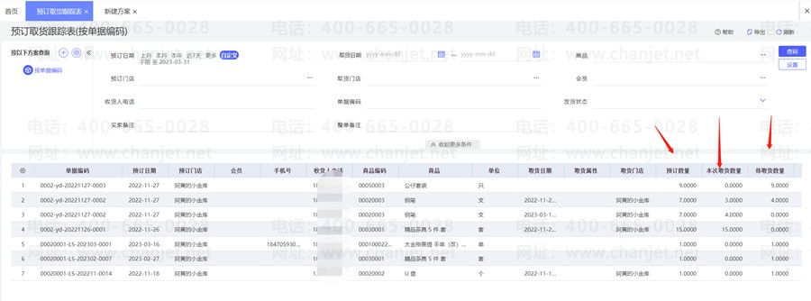 2.可查看到收货人预定数量、本次取货数量,未取货数量。