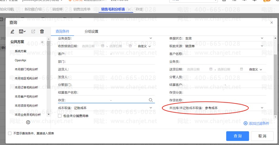 2.销售毛利分析表查询条件里未出库/未记账成本选择的成本没有数据