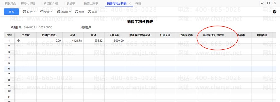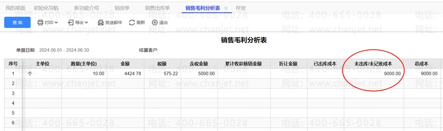 销售毛利分析表里的【未出库/未记账成本】不显示数据