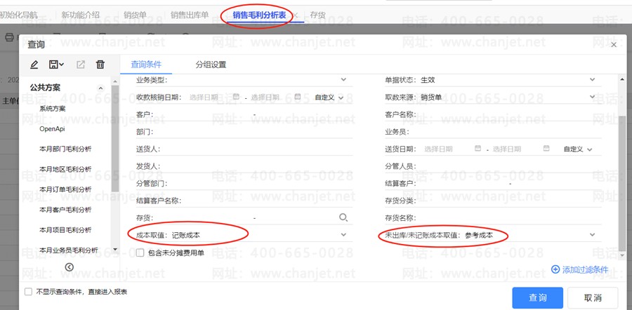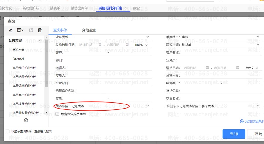 销售毛利分析表查询条件里成本取值要选记账成本,