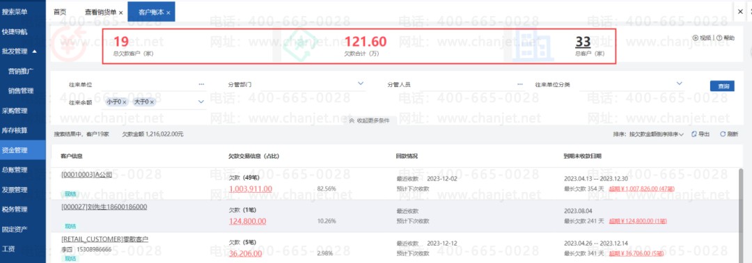 如果你的客户答应给你钱,但是迟迟不打过来,畅捷通好业财会像小闹钟一样提醒你:它会告诉你哪些款项已经拖了太久,你得赶紧催催。这样一来,你就能及时知道谁欠钱,不会等到年底才发现有一大笔钱没收回来。
