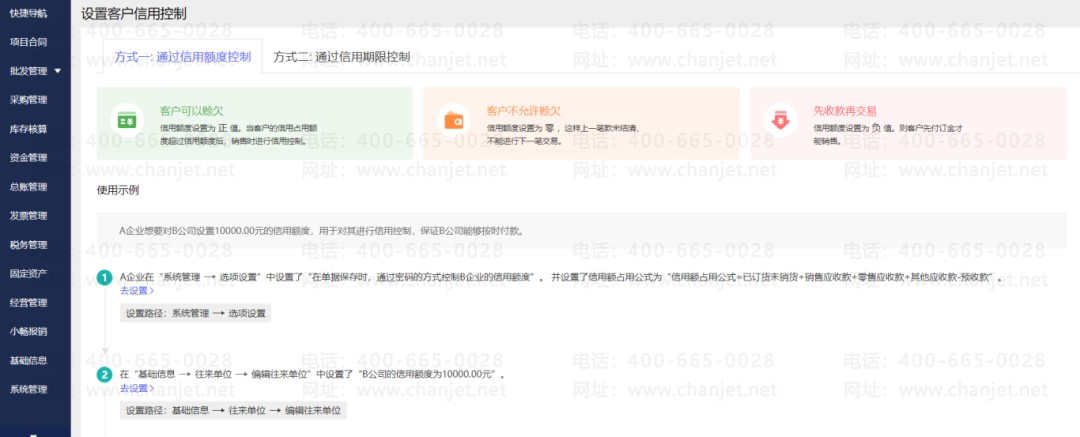 畅捷通好业财在客户信用控制能帮你给客户打分,你可以根据客户的还款记录和信用分数来决定下次给他们多少信用额度。这样一来,你就能更好地控制风险。