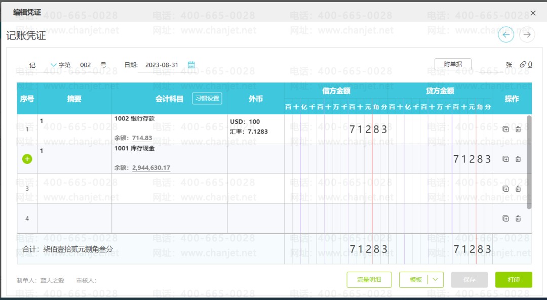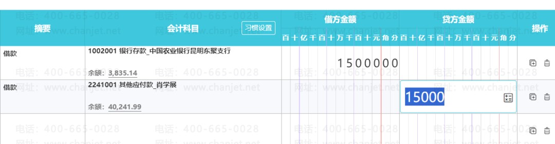 使用模板后,输入对应的金额即可。常用凭证可以根据具体业务的相似度进行修改或新增,明细科目、辅助核算项目、金额等信息也可以保存。