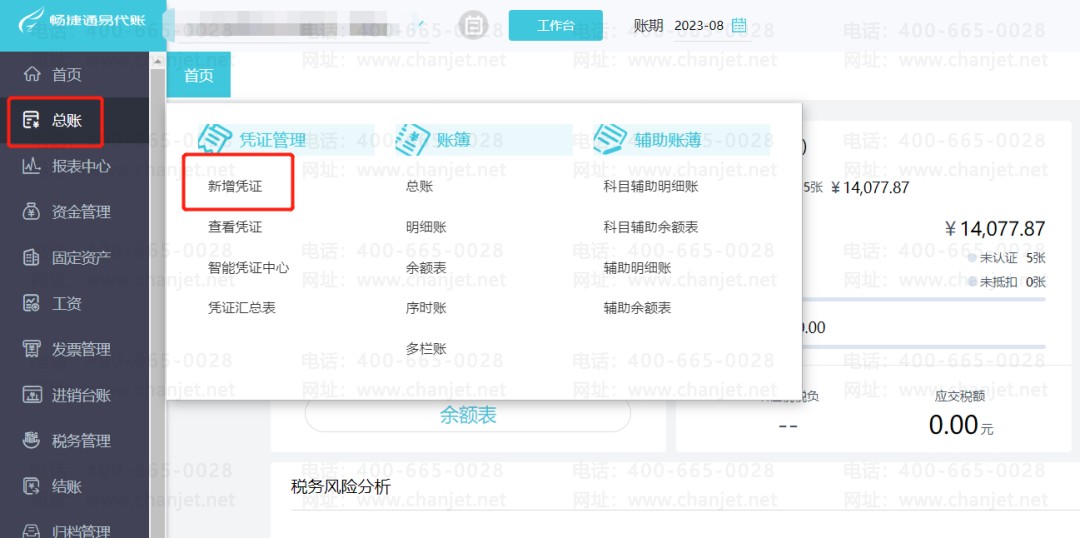 点击【总账】-【新增凭证】进入记账凭证页面