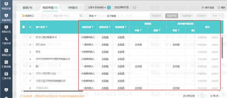 3、报税服务平台:提供批量为多家公司一键报税,申报数据自动根据会计的账务处理和发票信息生成,大幅提升报税效率。