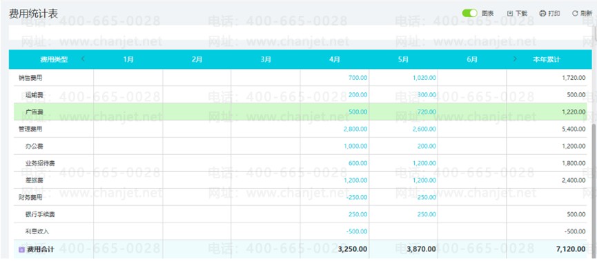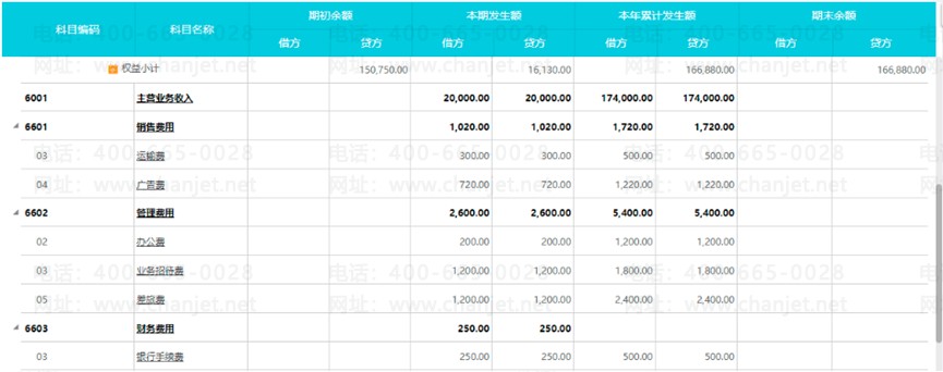 2、系统会根据余额表自动生成费用统计表数据,并列出各项明细。