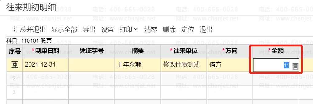 5.科目挂了辅助核算,需要双击科目的数据进去修改,另外在辅助核算明细页面,明细按钮能点的,需要点明细进去修改;明细按钮置灰的,可以直接修改