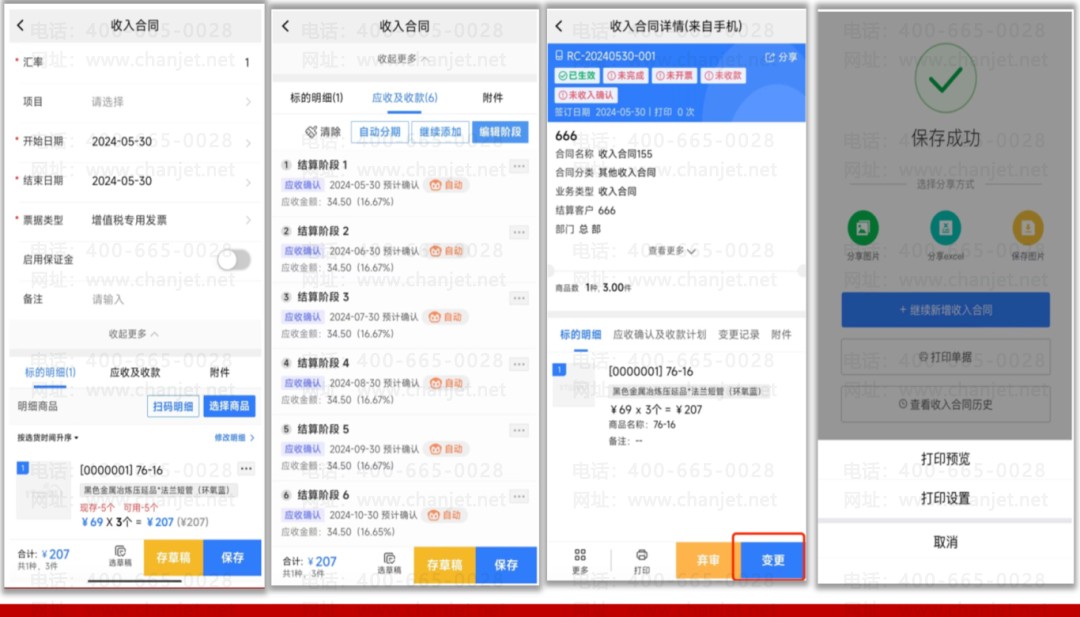 手机上也支持变更合同