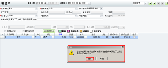 由于上次消费了5400元,按正常再次销售,单据过账时软件会提示会员卡进行升级,可实际操作并没有提示。