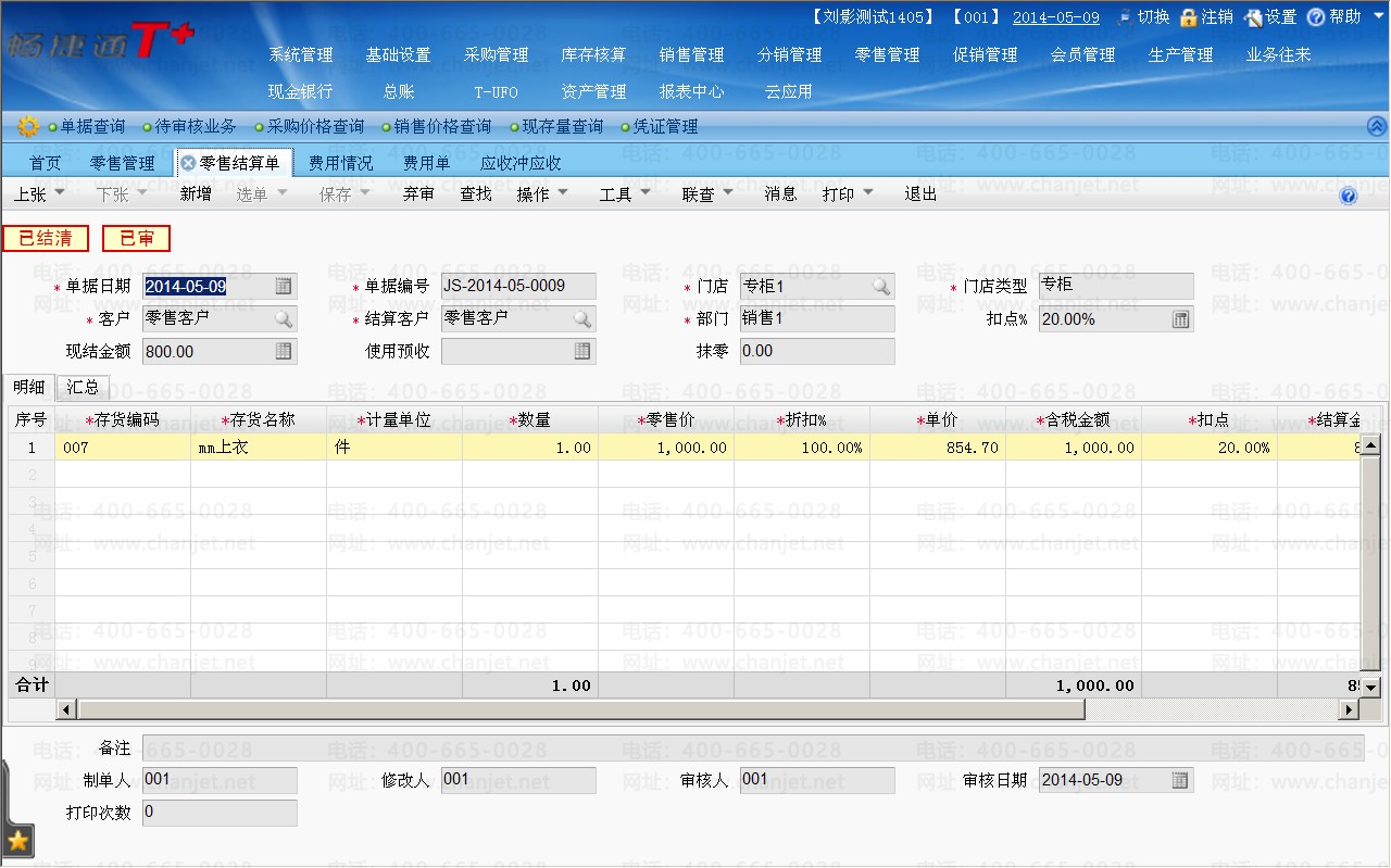 (6)再次查看对应的零售结算单,已经有了已结清的标识: