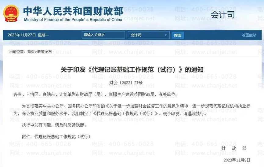 去年年底财政部发布了代理记账的新规范,也就是《代理记账基础工作规范(试行)》(财会〔2023〕27号),主要目的是为了规范代理记账机构执业行为,从2024年1月1日开始施行。