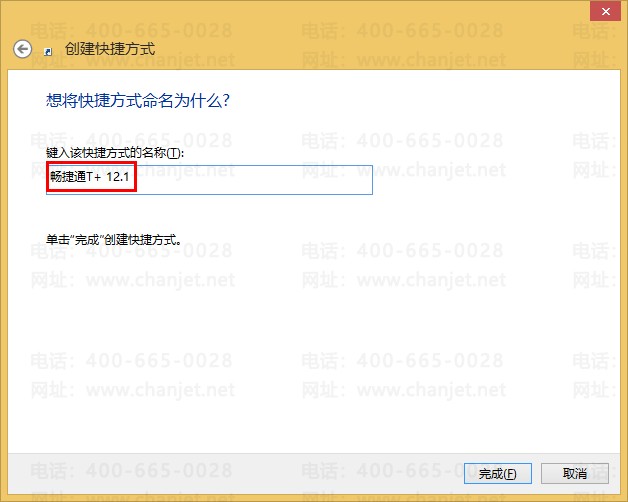 4、点“下一步”输入快捷方式的名称