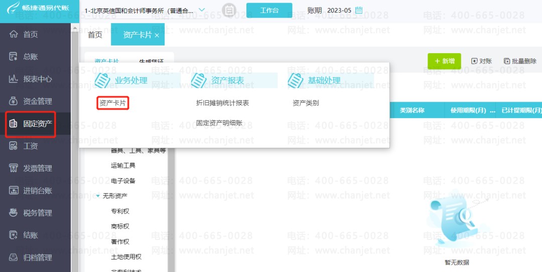 首先找到在【固定资产】里找到【资产卡片】。