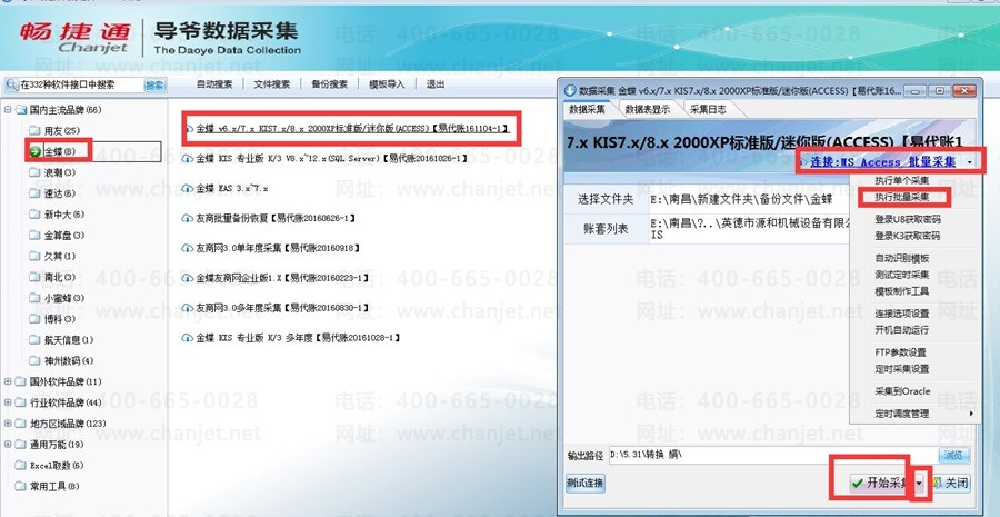 金蝶 V6.X 7.X KIS7.X 8.X 2000XP 标准版、迷你版等版本怎么通过导爷采集?