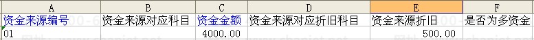 “多资金扩展”页签中,资金来源编号必须为文本型,资金金额及资金来源折旧必须为数值型