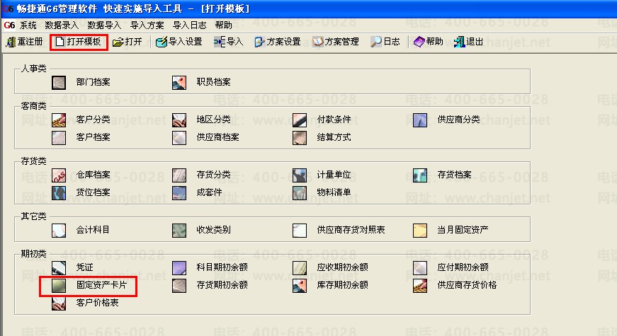 G6e快速实施工具导入固定资产原始卡片