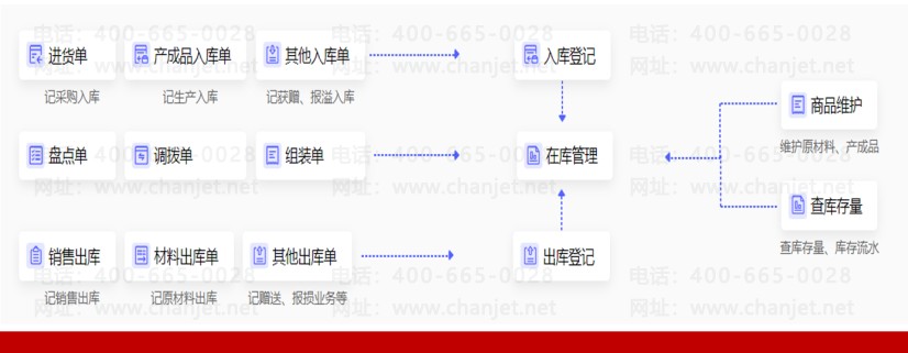进销存系统的作用就是让企业的物资流转起来,确保买卖顺畅,库存合理。主要模块有: