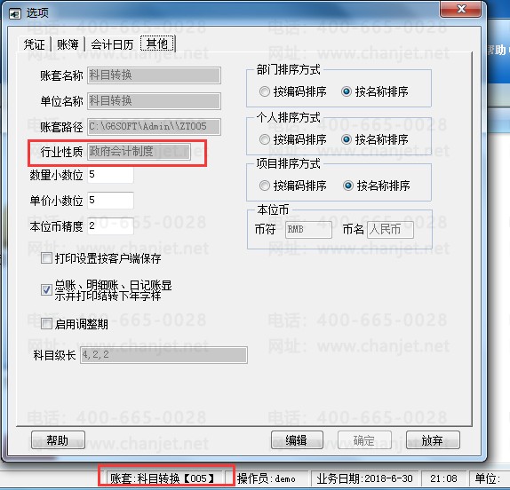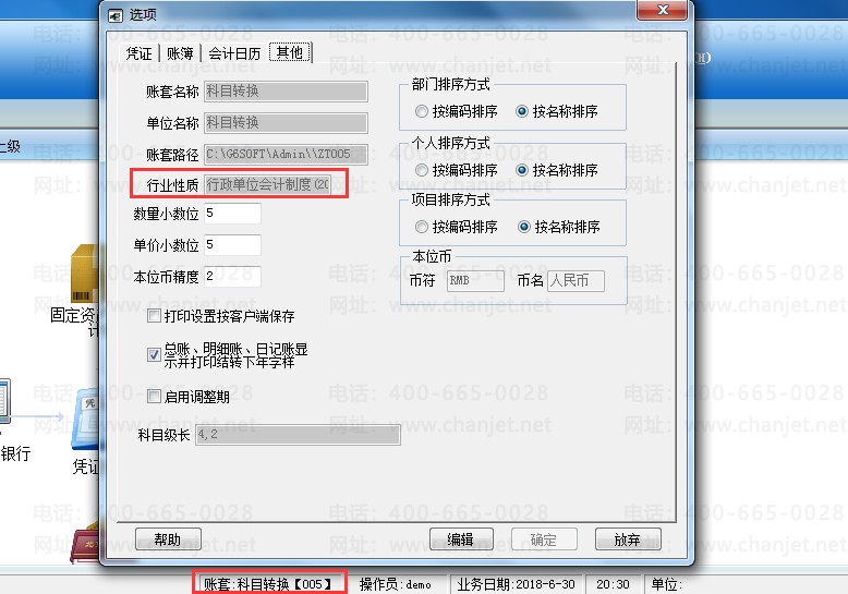 说明:本文以“行政单位会计制度2014”行业性质的账套,账套号为005做为演示,现在需要将005账套“行政单位会计制度2014”行业性质转换成“政府会计制度”;