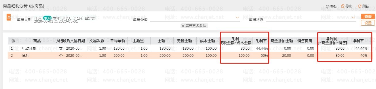 二、商品毛利分析表中的差异(销售毛利分析表也是同理)