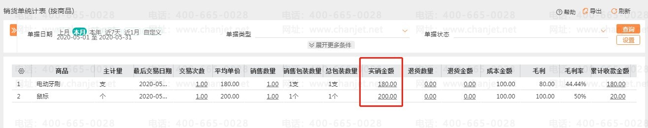 2. 收款抹零/现金折扣的,在销售统计中,不影响实销金额。