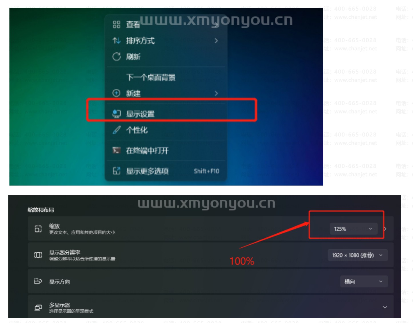 设置100%即可,也可稍大。但是显示没有问题的是100%