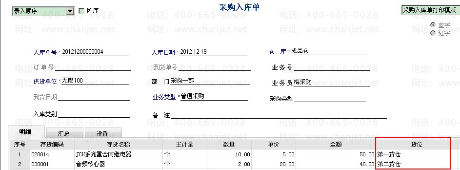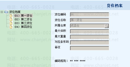 (2)、基础档案-业务-货位档案,增加所需要的货位名称: