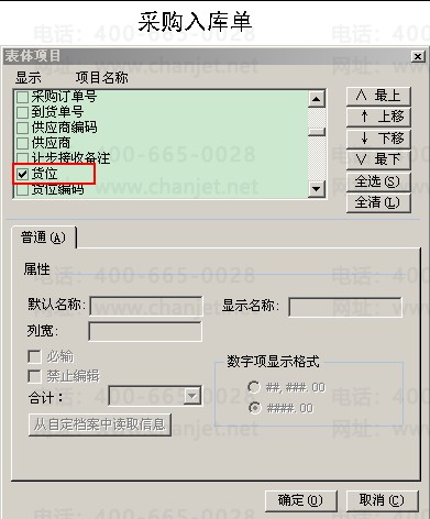 (3)、基础设置-单据格式设置-库存模块对单据进行表体项目设置勾选出货位:(本案例以采购入库单和库存期初为例)