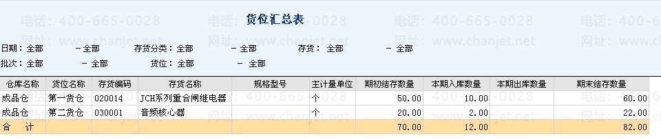 货位汇总表是汇总所有货位和存货的收发存情况: