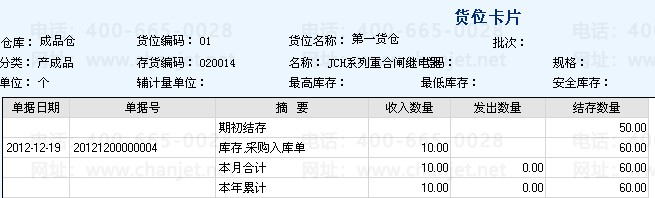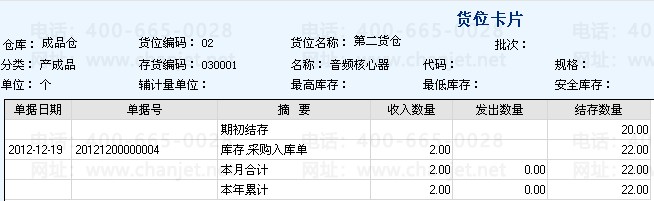(3)业务发生后,可以通过帐表-货位帐-货位卡片和货位汇总表进行查询: