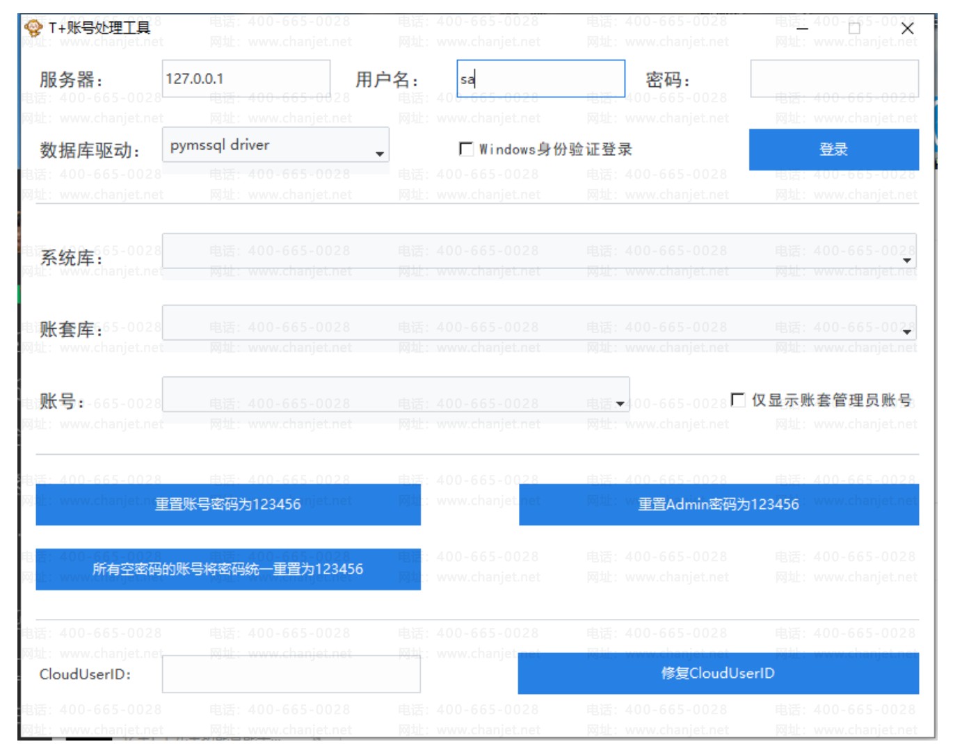 操作步骤看详情(录入的密码为安装数据创建的密码)操作工具后记得重启T+服务管理器中的所有服务,不知道怎么重启可以重启电脑。