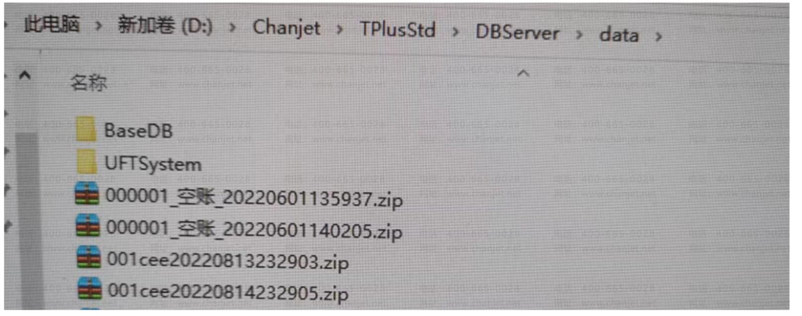 2、在数据库目录(默认D:ChanjetTPlusStdDBServerdata)下若存在正常的账套备份数据情况下,可以拷贝备份文件,安装T+及T+最新补丁,重新导入备份的文件,即可恢复使用。