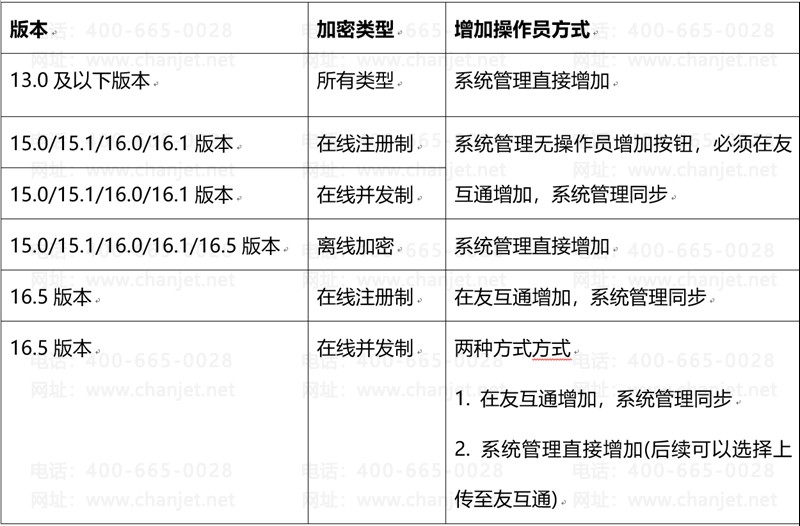 2. 16.5在线并发制加密,增加操作员方式进行了优化: