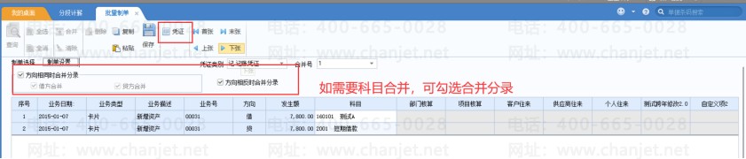 2. 对多笔业务合并制单