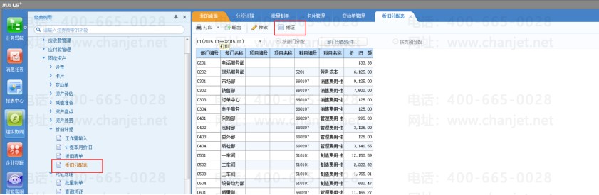 4. 折旧——折旧分配表界面。点击凭证