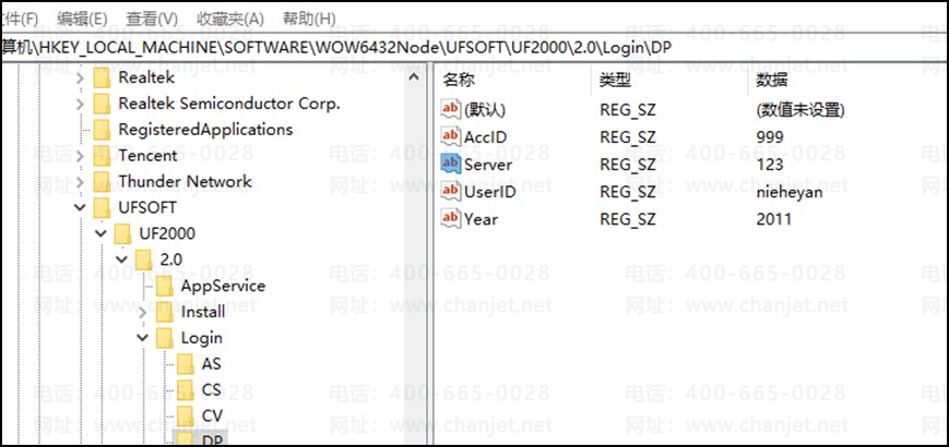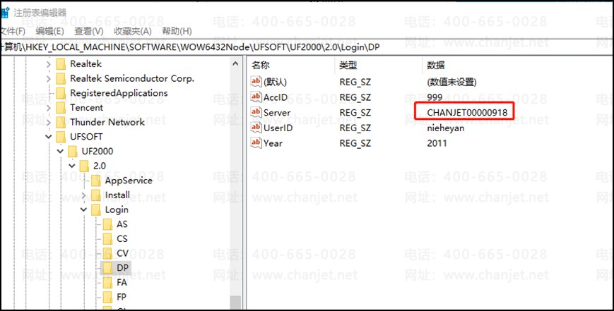 64位系统:【HKEY_LOCAL_MACHINESOFTWAREWow6432NodeUFSOFTUF20002.0Login】中的sever值可能也为XXX
