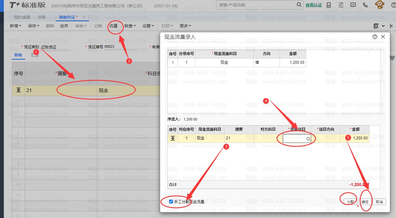 做凭证的时候,输入现金或者银行之后,点上面的“流量”,如果事先设置了对应的科目,点下面的分配即可。如果没有设置,勾选“手工分配现金流量”,然后选择流量项目,然后“确定”。