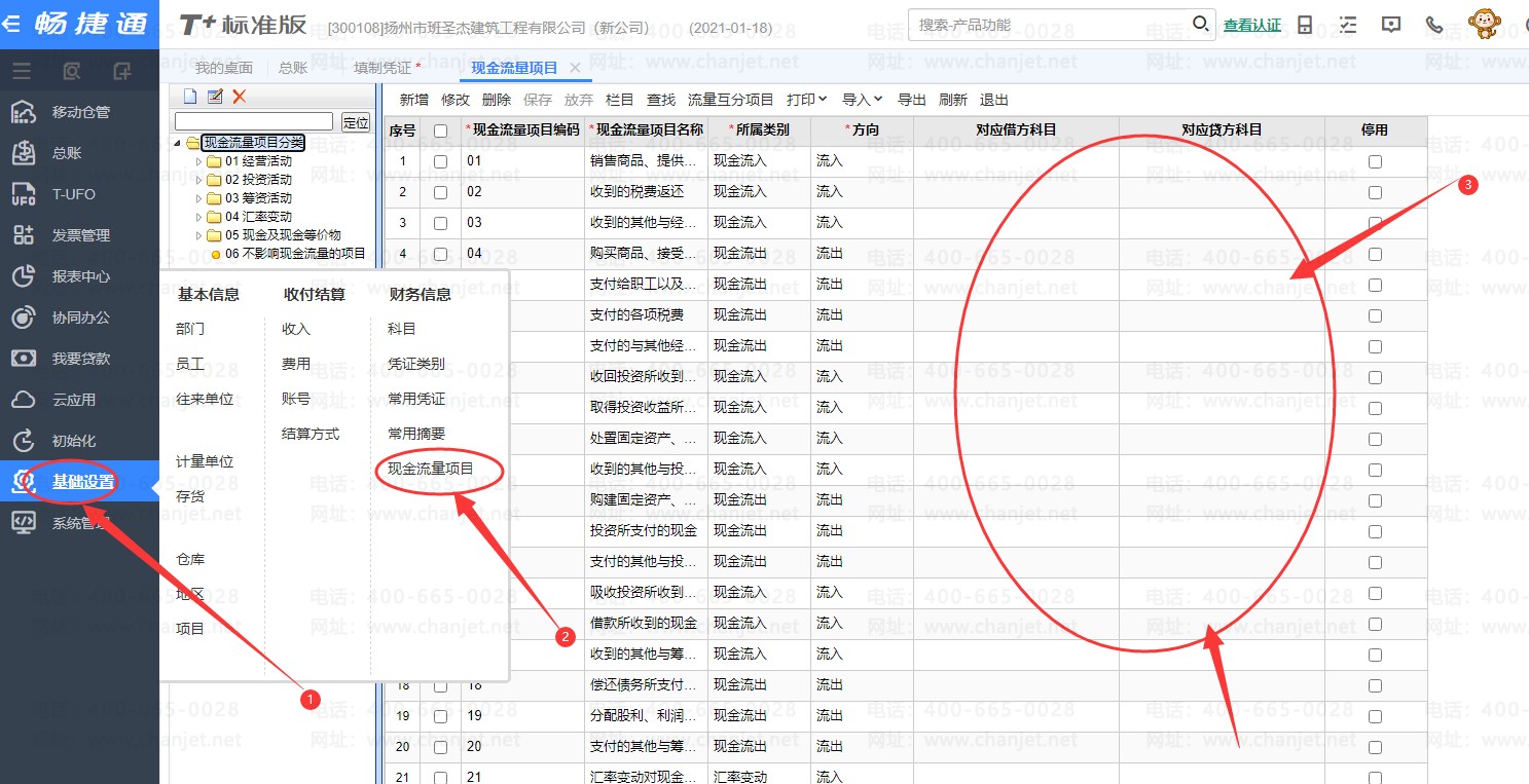 用友畅捷通T3、U8、T+现金流量表启用设置
