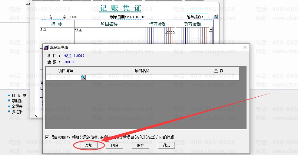 填制凭证的时候,输入现金或者银行存款有关的科目之后会自动弹出来,然后点增加,最后选具体项目