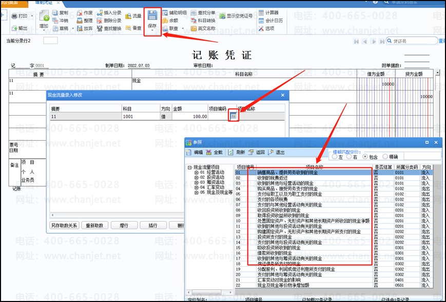 凭证保存的时候,会弹出现金流量录入修改的框子,点击选择之后确定就可以正常保存。