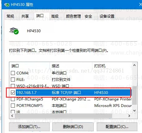 添加好之后要把当前打印机的端口配置为TCP/IP端口