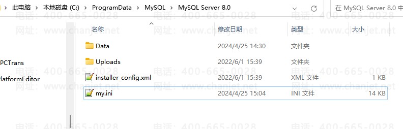 2.修改mysql my.ini配置文件(C:\ProgramData\MySQL\MySQL Server 8.0)