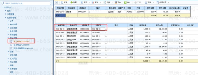 2) 期初发票在选择收款界面收款,收款之后自动核销