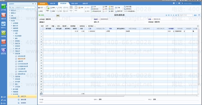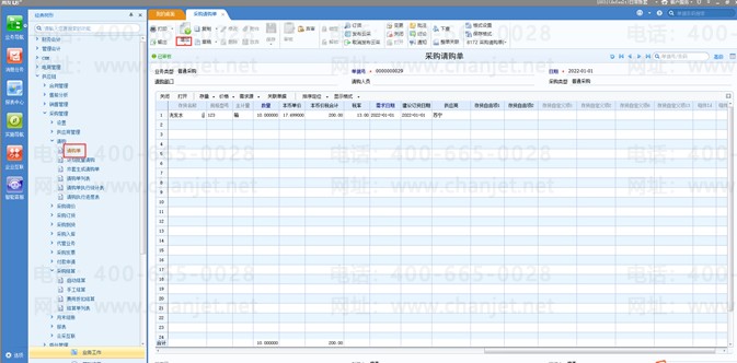 1、新增一个空白的请购单;