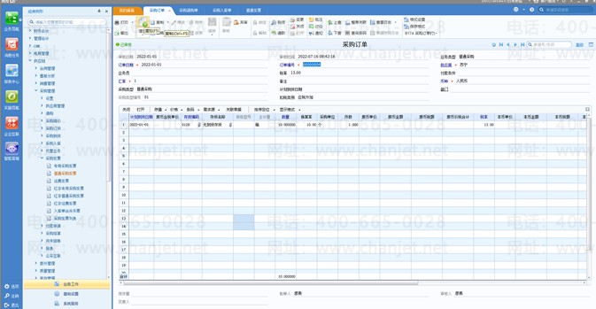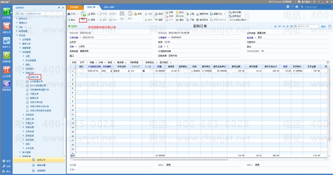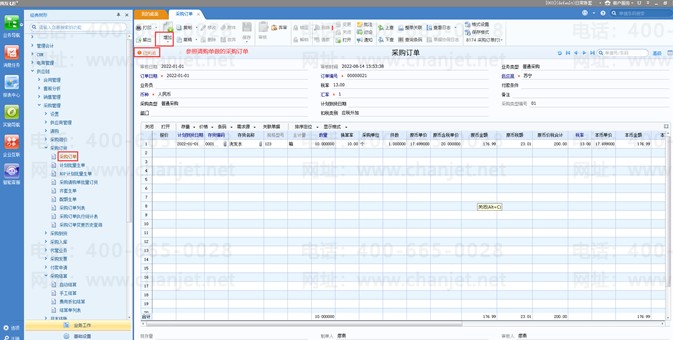 2、参照请购单做采购订单;