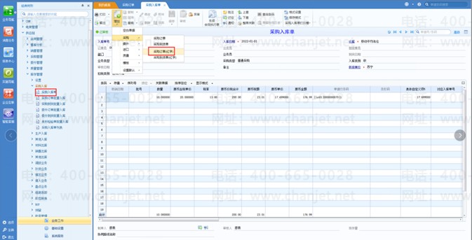 3、参照采购订单做采购入库单;