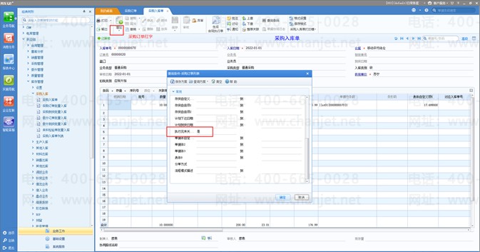 4、参照采购订单(红字)做红字的采购入库单,查询条件是否执行完未关闭选择是;