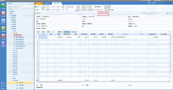 3、参照采购订单做蓝字采购入库单;